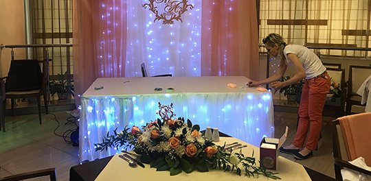 Оформляя свадьбы, мы не просто собираем цветы в композиции, мы формируем эмоции будущих гостей и виновников торжества, их настроение. Наши флористы-декораторы в совершенстве владеют искусством оформления и подходят к своему делу с душой. Именно поэтому каждая свадьба, к которой они приложили свои талантливые руки – это нечто запоминающееся и потрясающее, вызывающее восторг у жениха и невесты, а также всех гостей на свадьбе.